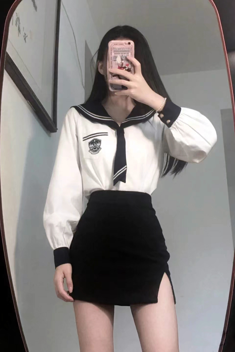 黑色大码 性感学院风短裙纯欲弹力带内衬半身裙 开叉包臀裙辣妹修身