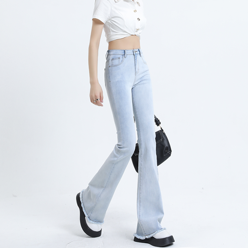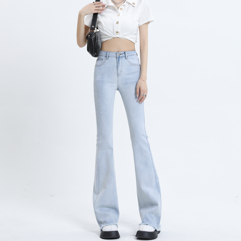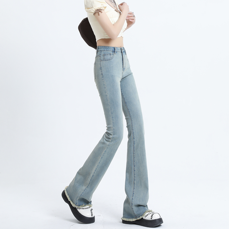 微喇牛仔裤 王家有鱼 新款 2025秋季 中高腰不贴腿辣妹女 古早蓝灰
