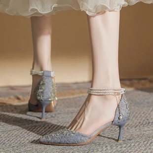 防掉神器防止鞋 加长法式 带高跟鞋 链防掉跟束鞋 大不跟脚绑带 珍珠鞋