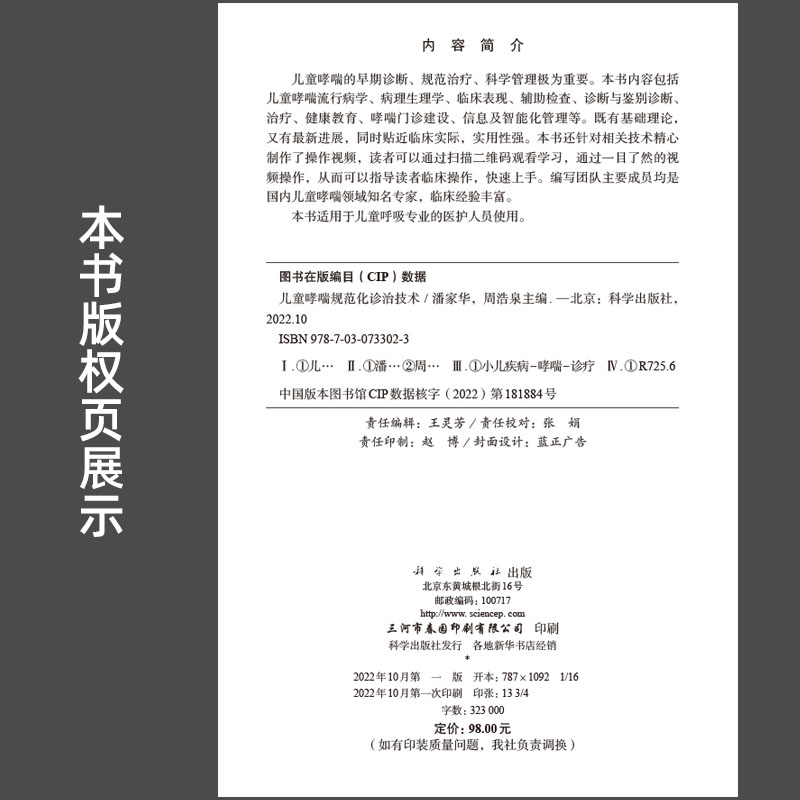 潘家华 儿童哮喘规范化诊治技术 周浩泉9787030733023 社直发官方正版 科学出版
