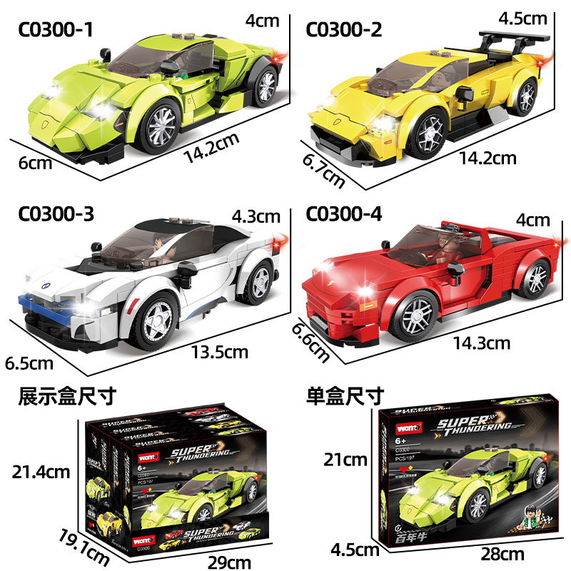 沃马积木拼装 赛车系列超跑车模型汽车儿童玩具男孩子益智礼物 经典
