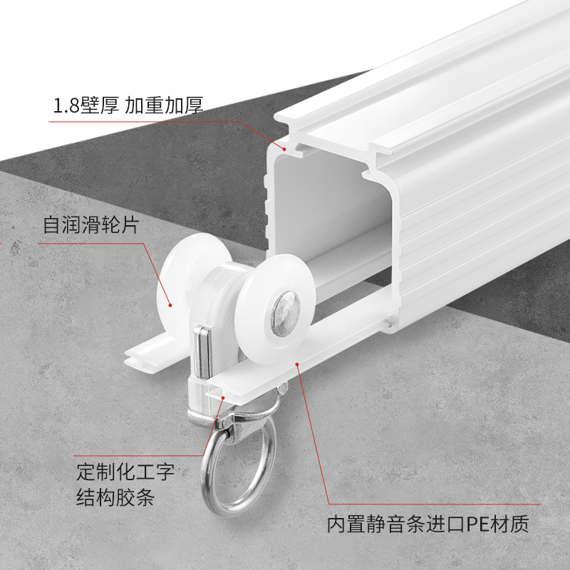 纳米条静音窗帘轨道坚美铝合金滑轨顶装 导轨阳台卧室窗帘杆 侧装