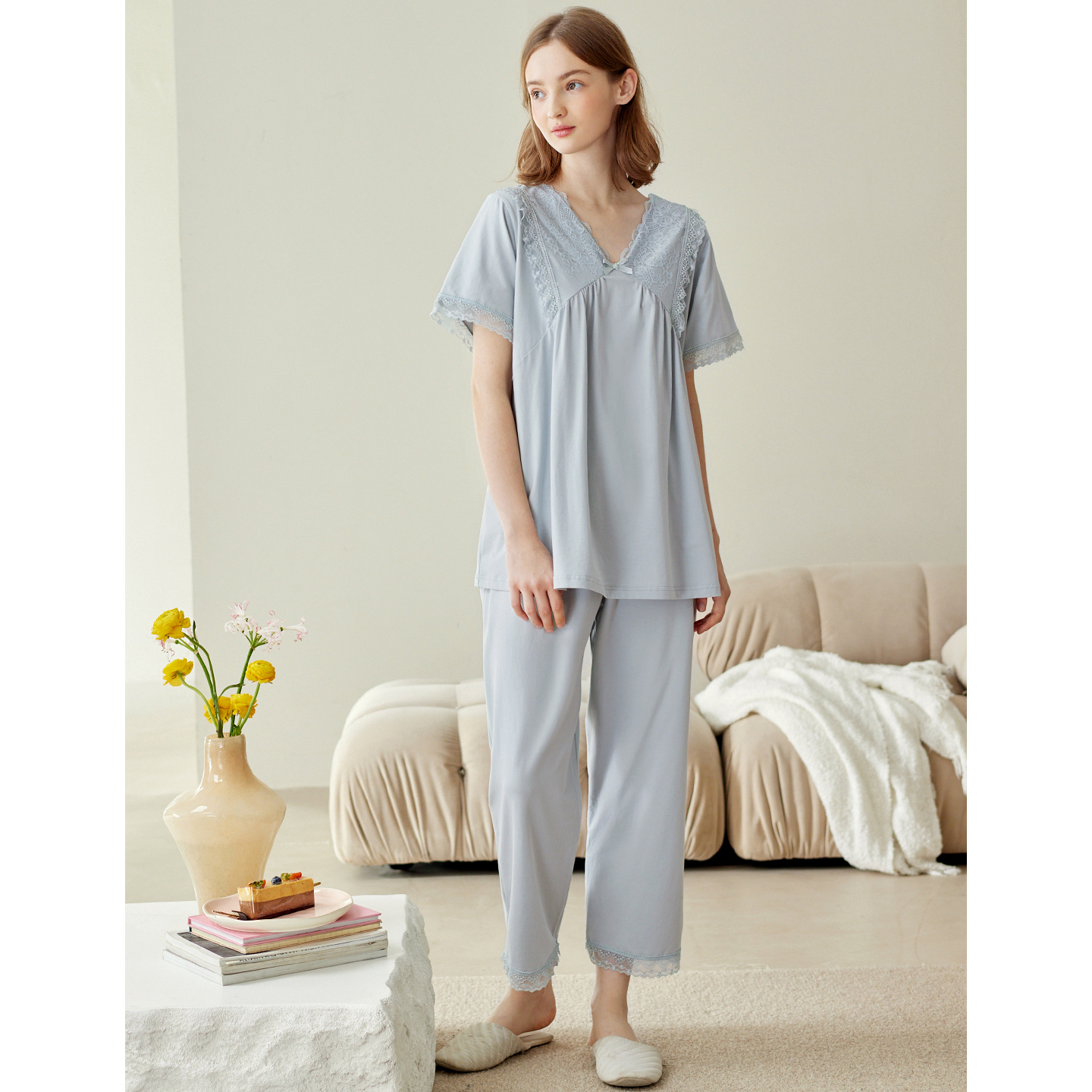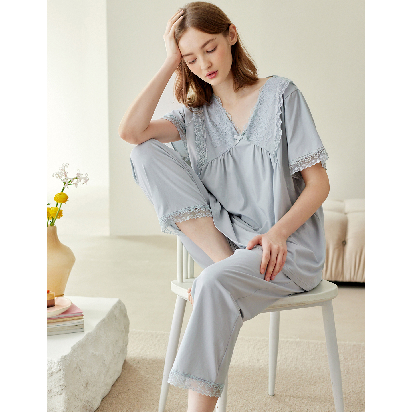 套头套装 女款 休闲宽松甜美全棉家居服 纯棉短袖 芬腾女士睡衣夏薄款
