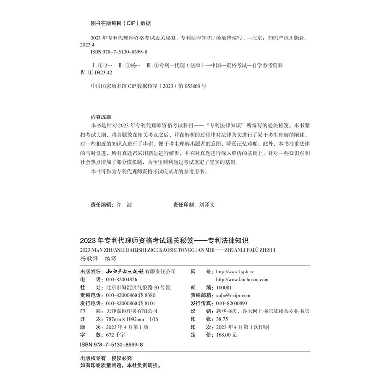 专利法律知识 社 杨敏锋 知识产权出版 9787513086998 2023专利人资格考试教材考试用书通关秘籍 2023年专利代理师资格考试通关秘笈