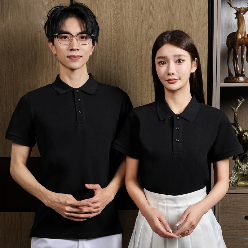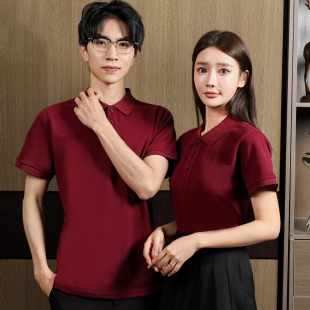 定制工作服棉质上衣体刺绣logo 有领t恤衫 紫色翻领POLO衫 女短袖
