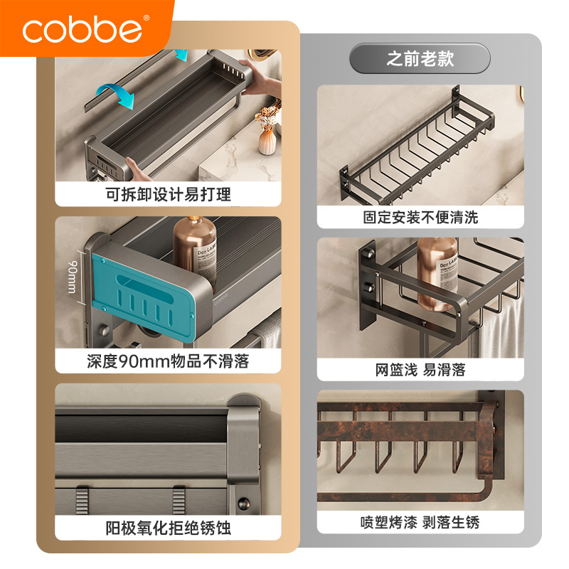 卡贝卫生间置物架免打孔毛巾架浴巾架一体厕所枪灰架子洗手间套件
