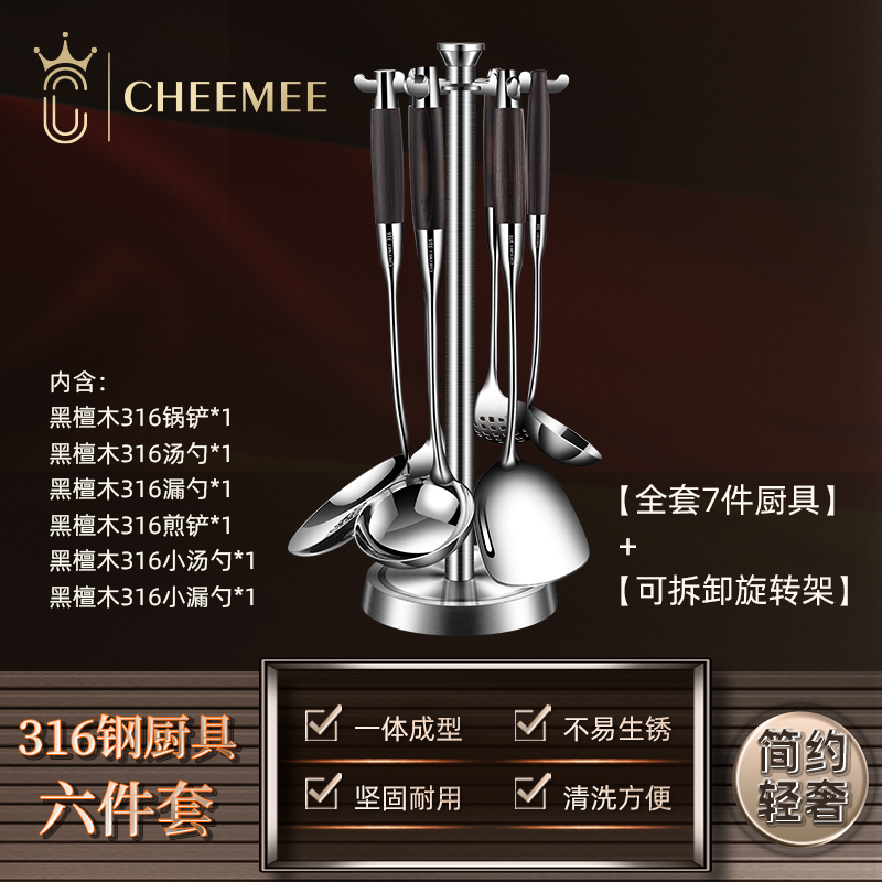 CHEEMEE食品级316不锈钢锅铲套装 厨具家用厨房汤勺漏勺煎铲炒勺铲