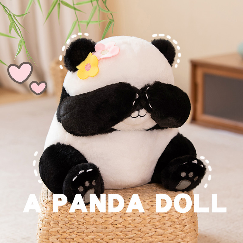 萌兰仿真花花周边黑白大熊猫玩偶丫丫抱枕毛绒玩具娃娃公仔睡觉抱