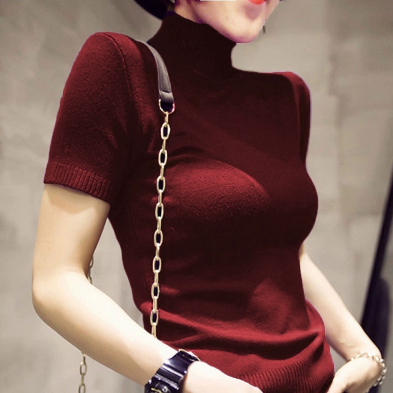 半高领短袖 2025新款 上衣修身 T恤女冰丝短袖 春夏季 打底衫 针织女装