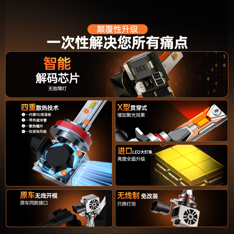 鲸特led汽车大灯h1灯泡h7车灯h11改装 无线聚光h4远近一体9005强光