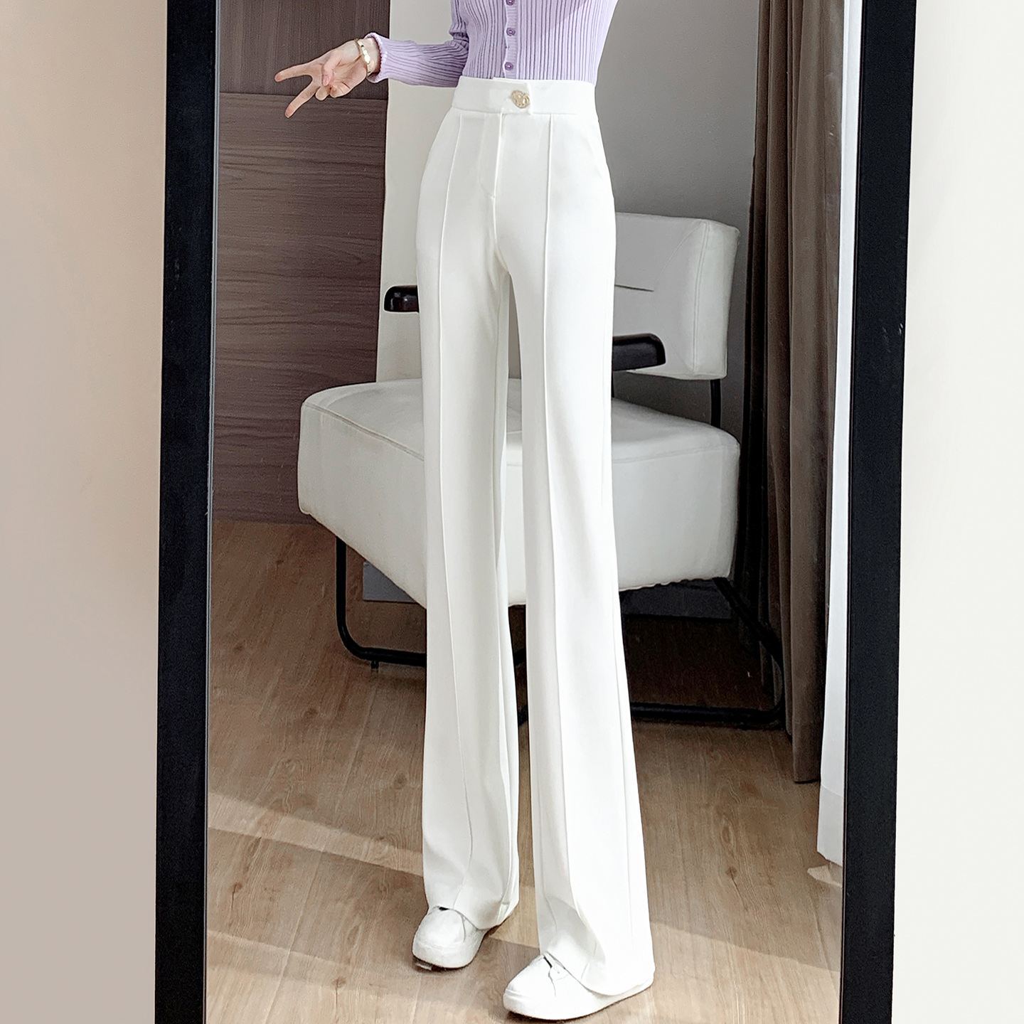 喇叭裤 白色直筒微喇裤 拖地西装 子高腰垂感气质休闲女裤 女秋冬长裤