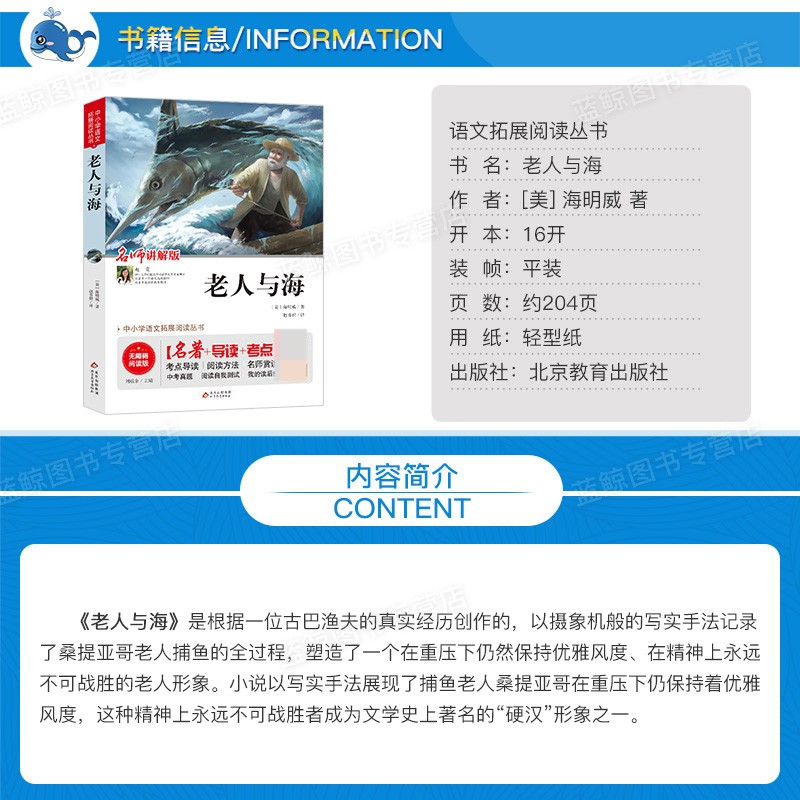 北京教育出版 老人与海正版 青少年版 中小学生课外阅读书籍 海明威 考点 包邮 社 初中生文学名著 导读