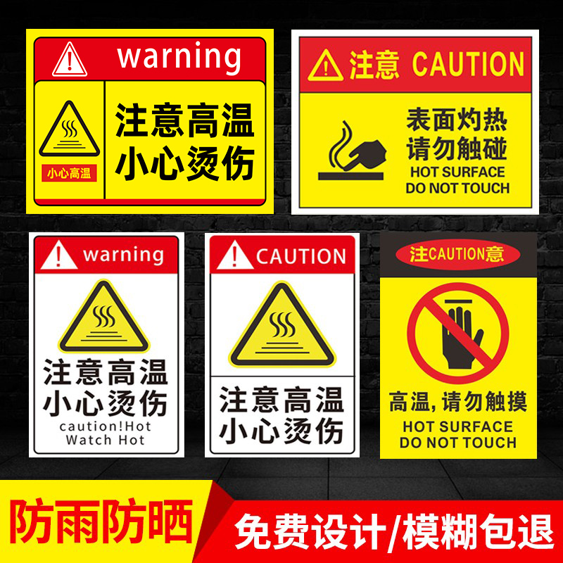 小心烫伤加厚提示贴注意高温小心烫伤标志牌当心烫伤提示牌防烫伤标识高温危险警示牌高温安全标识牌警告标志
