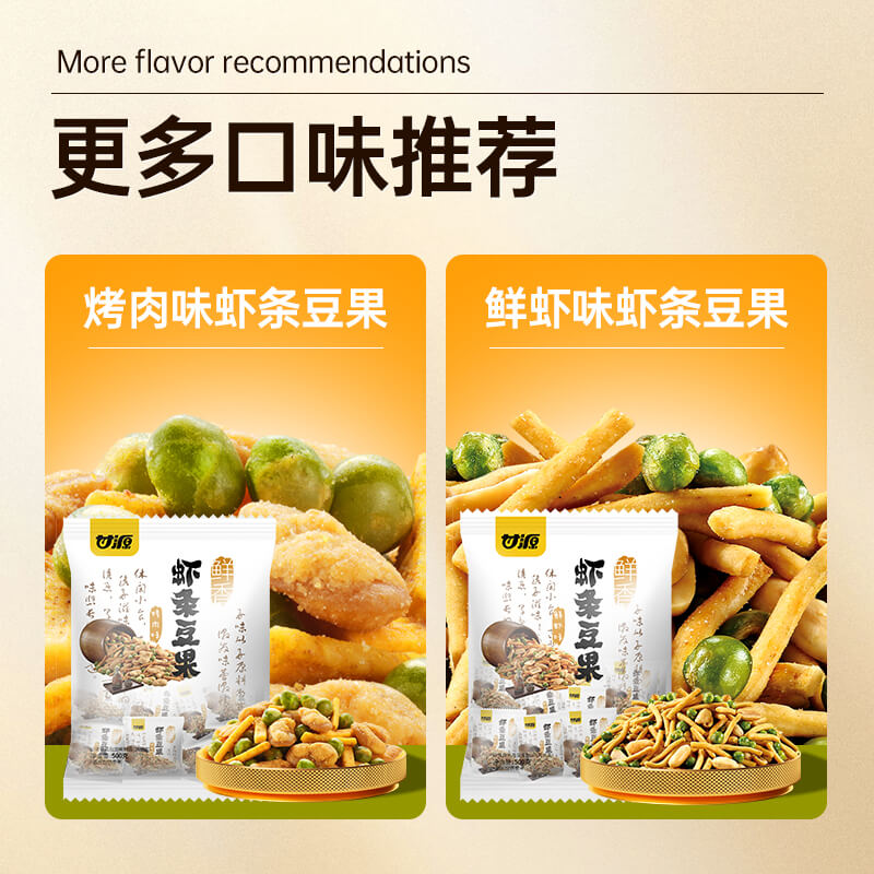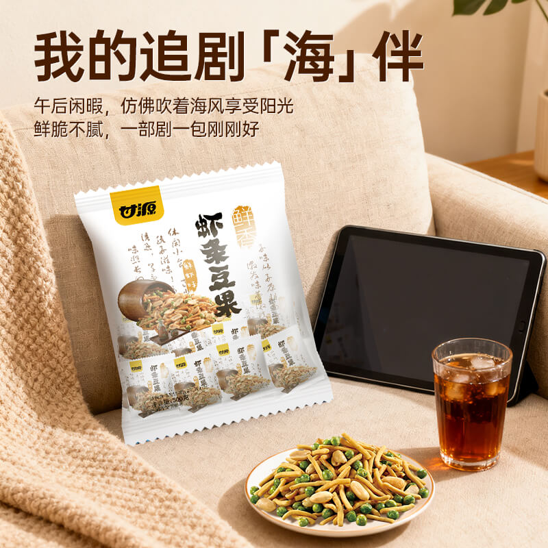甘源鲜虾味虾条豆果中秋礼包蚕豆花生混合豆果追剧解馋网红零食