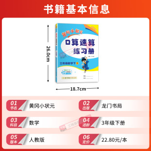 RJ版 口算速算练习册三年级下册数学人教版 龙门书局3年级下册黄冈口算速算小学数学课本同步口算心算速算巧算 黄冈小状元 2024春新版