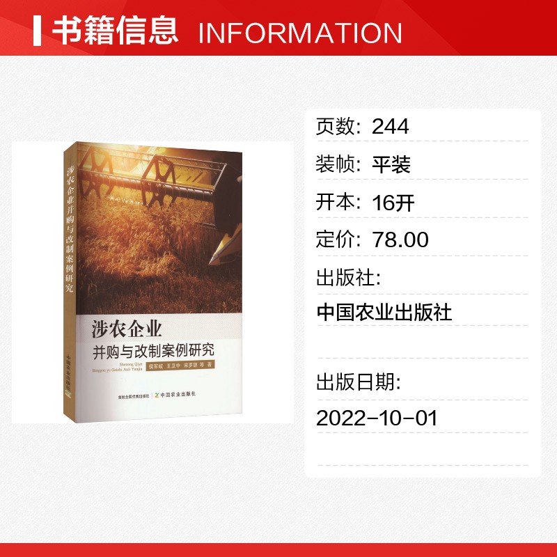著 各部门经济经管 中国农业出版 侯军岐 社 图书籍 等 新华书店正版 涉农企业并购与改制案例研究 励志