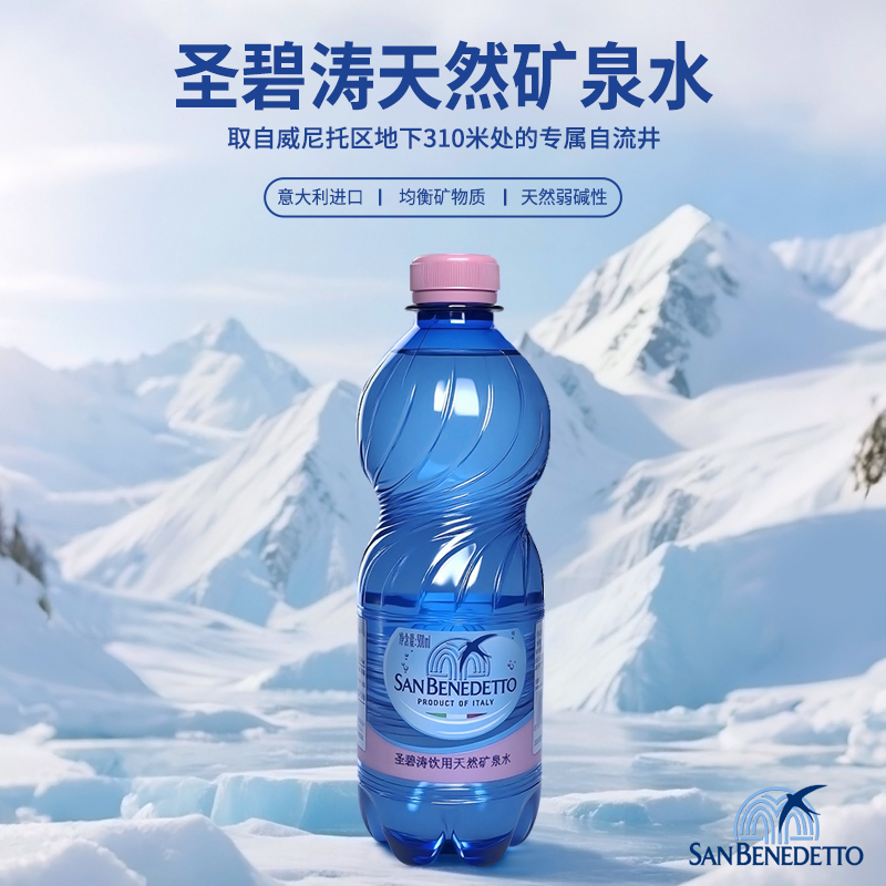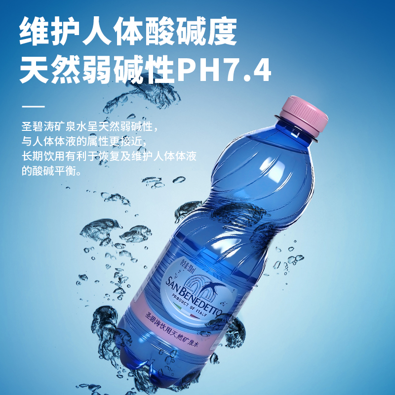 意大利圣碧涛进口天然山泉无糖气泡碳酸饮料饮用水1.5L 6整箱大瓶