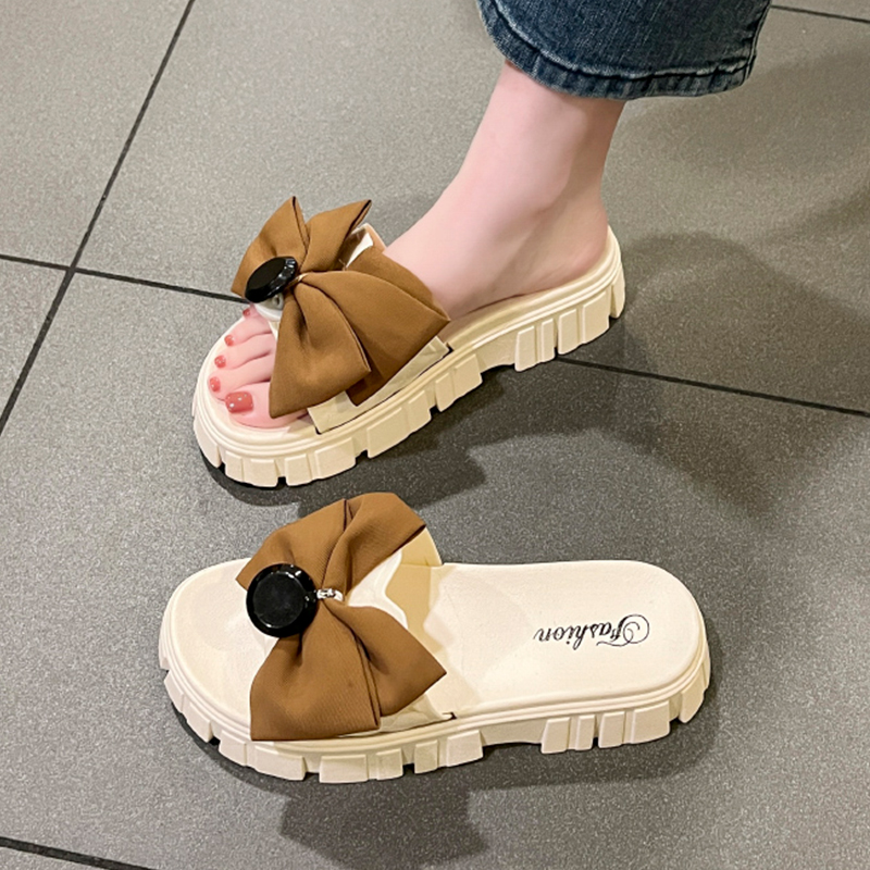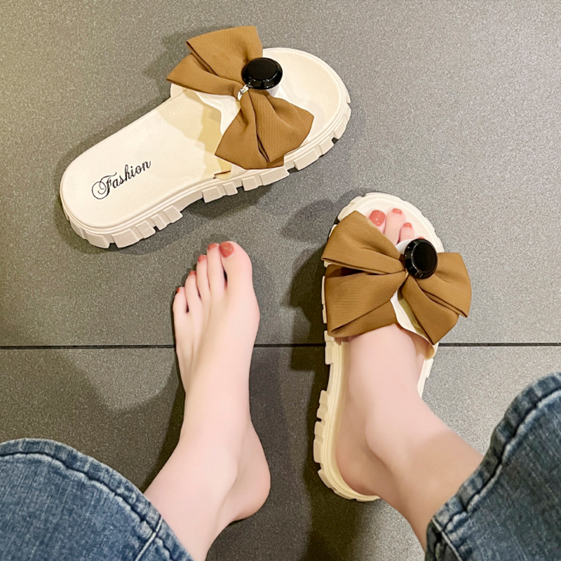 蝴蝶结厚底松糕鞋 夏季 外穿海边凉拖鞋 女时尚 高跟外出一字拖 拖鞋