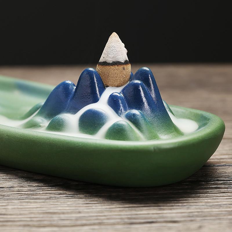 跨境陶瓷线香倒流香薰炉 创意高山流水家居倒流香座檀香炉工艺品