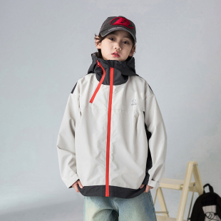 男童外套春秋款 儿童痞帅风冲锋衣男孩炸街上衣中大童衣服 2025新款