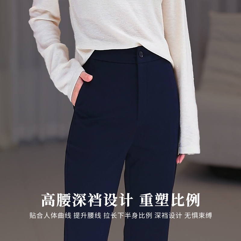 不含腰带 晚白2025年秋新款 女 含棉含莱赛尔高腰烟管休闲裤 时尚