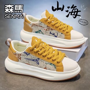 青少年运动厚底增高小白潮鞋 高级感百搭休闲阿甘板鞋 秋季 森马男鞋