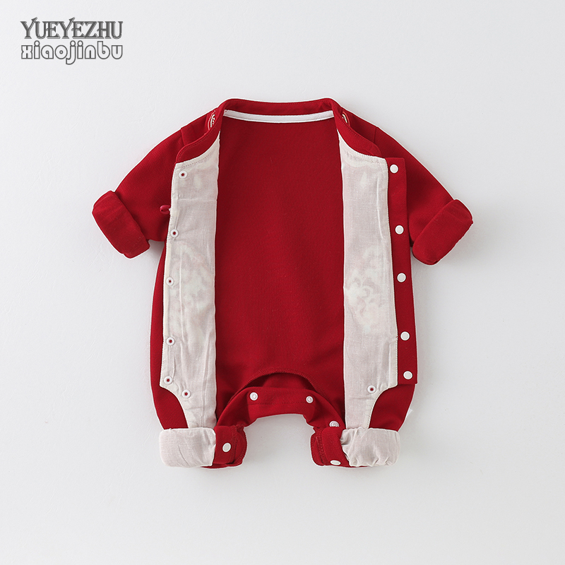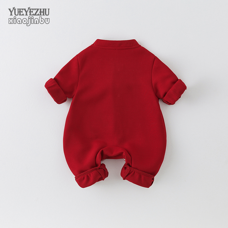 女宝宝中国风连体衣春秋装 薄款 红色满月周岁 长袖 百天婴儿衣服秋季