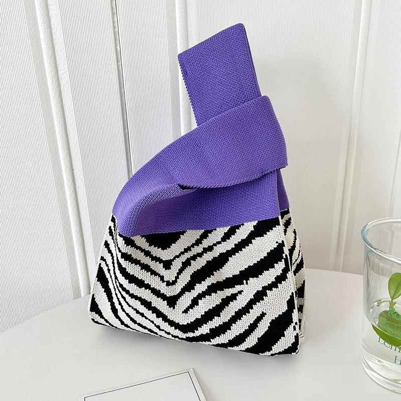 包包女小众设计背心包马甲包潮流时尚 斑马纹撞色针织手拎包手提包