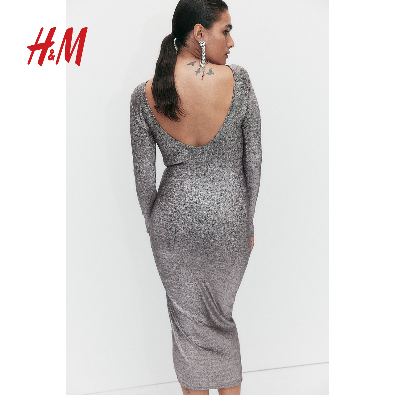 V领长袖 垂坠修身 舒适柔软短裙1201597 连衣裙秋季 HM女装