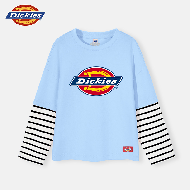 男童美式 t恤秋季 拼接上衣女童纯棉打底体恤A 儿童长袖 Dickies童装