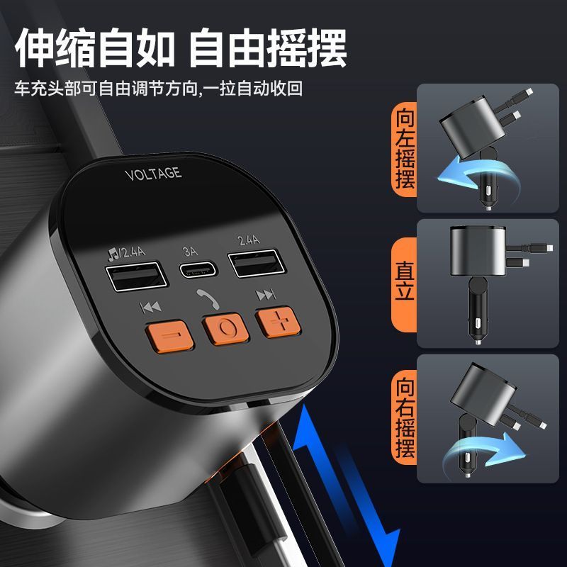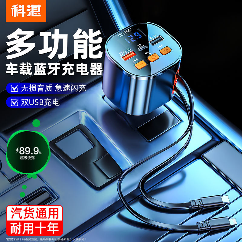 科湛车载蓝牙5.0mp3播放器接收器充电器自带伸缩快充线无损音乐