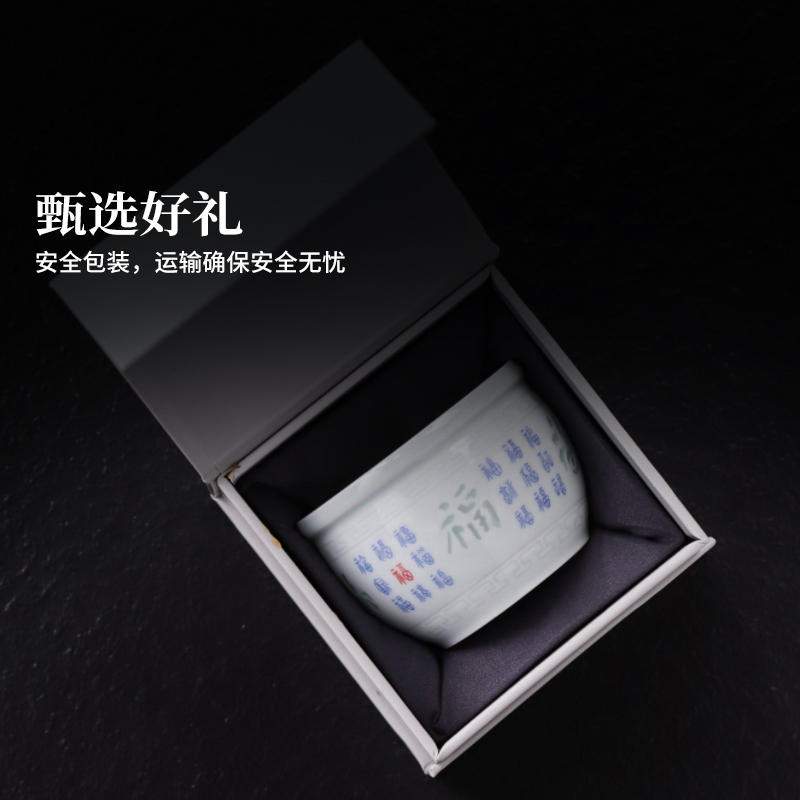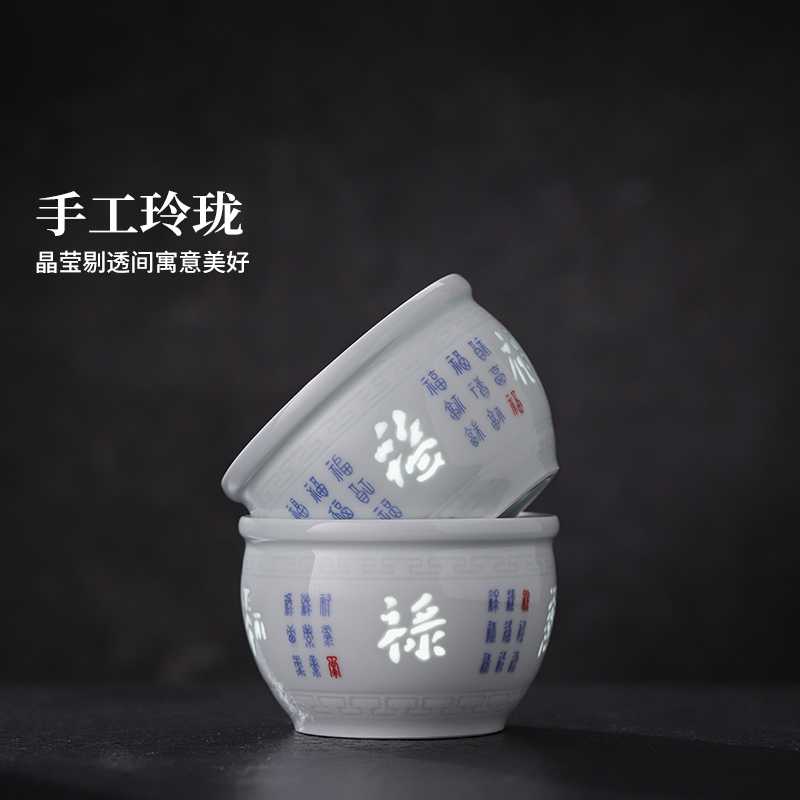 景德镇官方陶瓷釉中青花玲珑茶杯主人杯高档个人专用单杯品茗杯