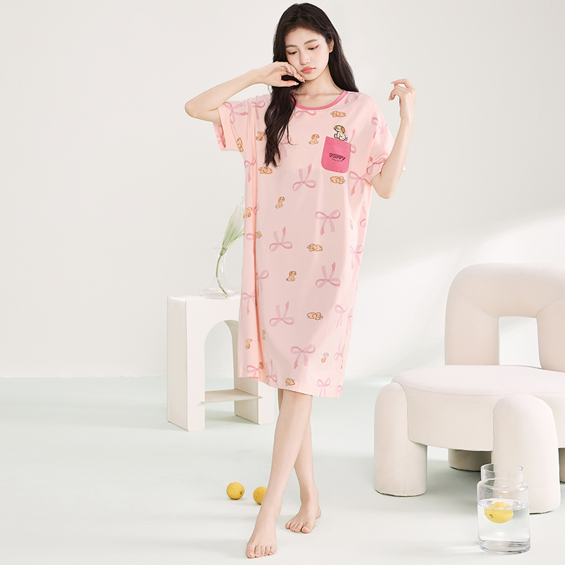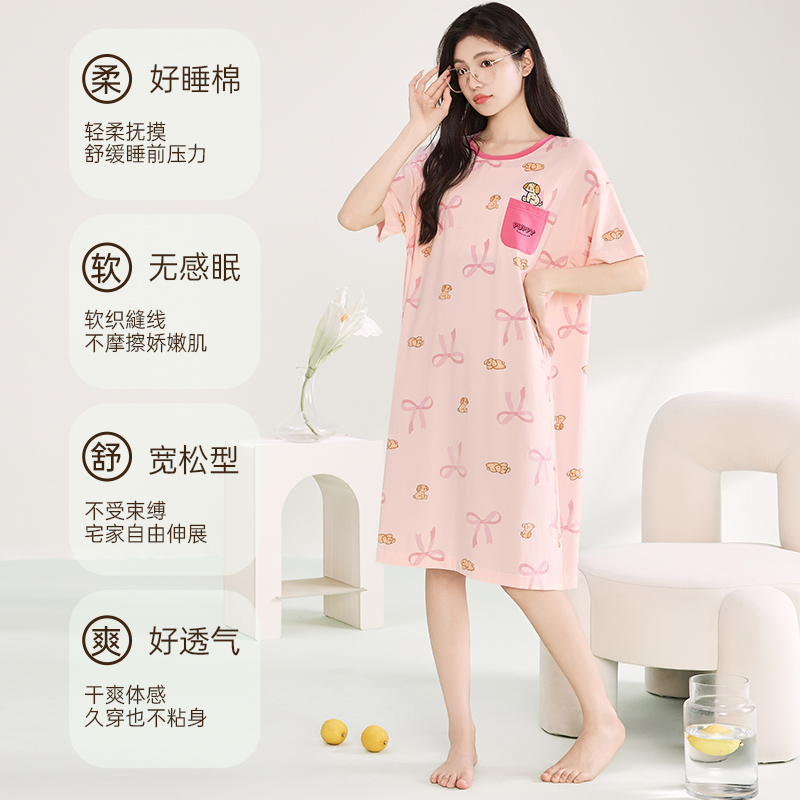 宽松短袖 玛伦萨纯棉睡裙女款 中长款 夏季 裙圆领套头连衣裙 2025新款