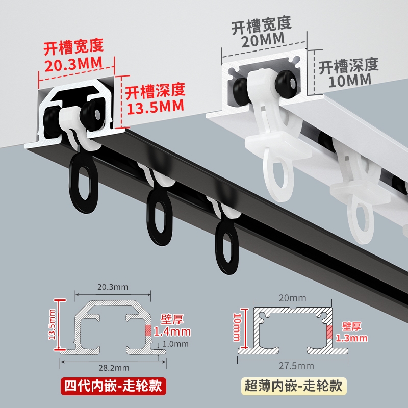 轨道超薄预埋式 顶装 轨道可弯单双铝合金 窗帘轨道内嵌隐藏式 嵌入式