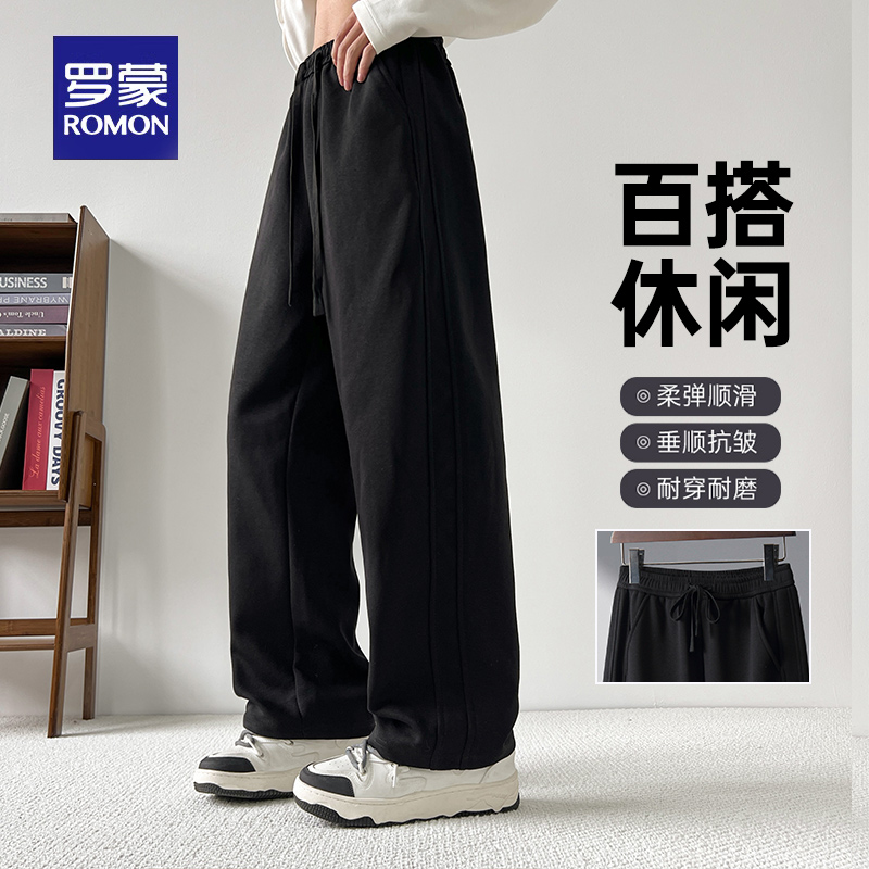 宽松阔腿裤 班尼路直筒卫裤 运动裤 黑色休闲长裤 子男生LF 男2025秋季