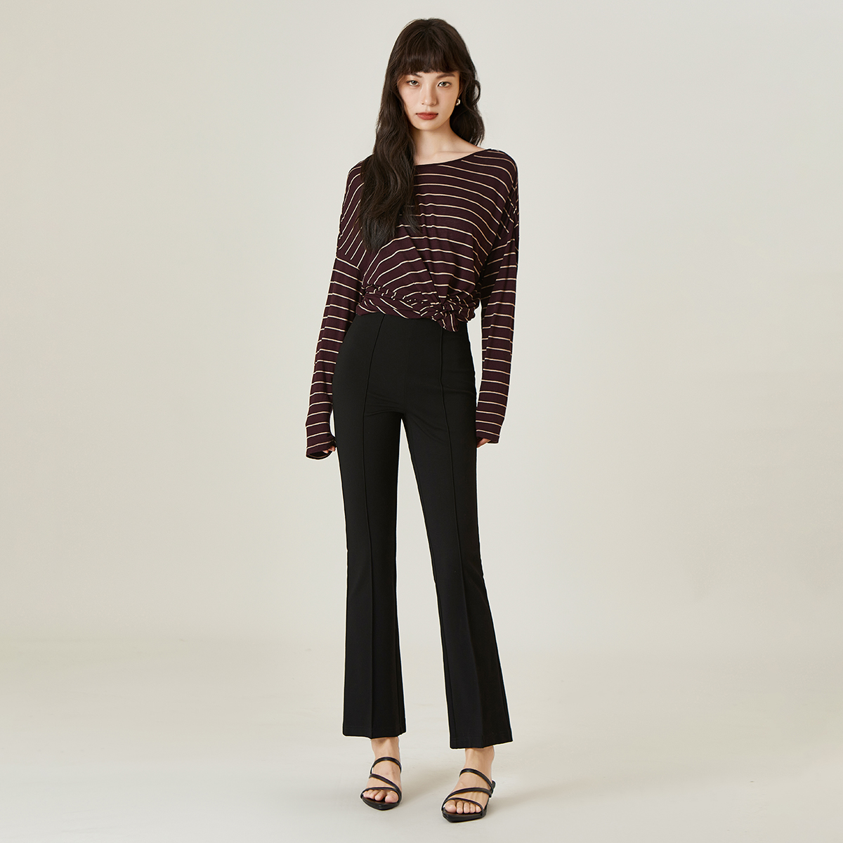 女春秋新款 休闲直筒慵懒松弛感裤 高腰垂感窄版 裤 子 西装 黑色阔腿裤