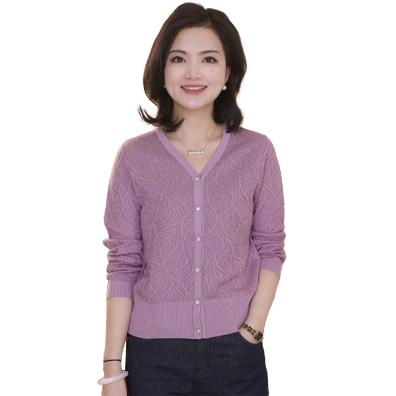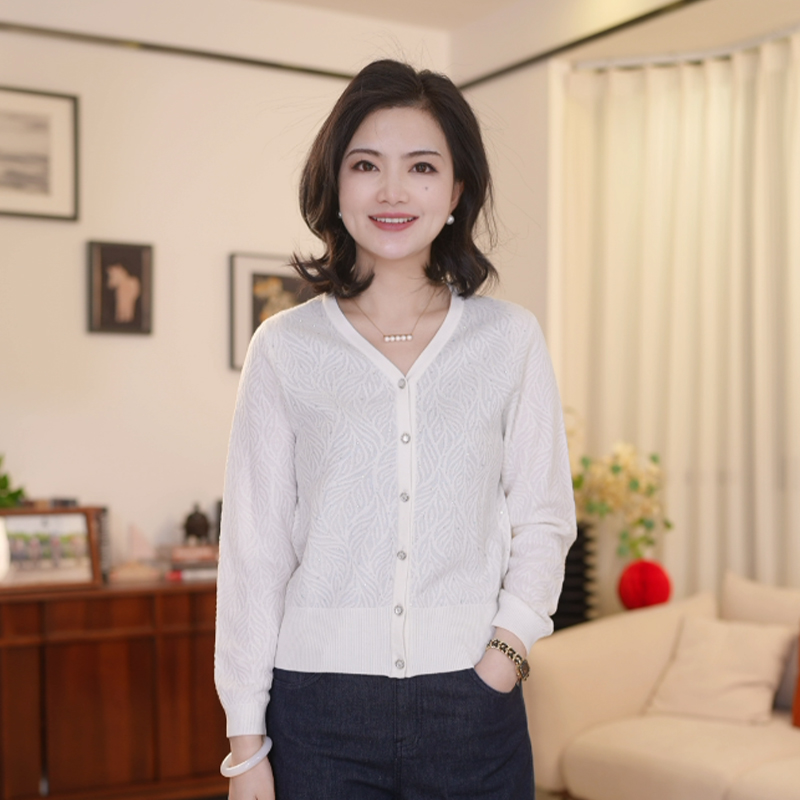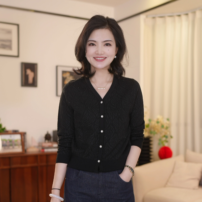 新款 枫竺女装 女2025秋季 针织开衫 外穿毛衣 莱赛尔V领提花烫钻长袖