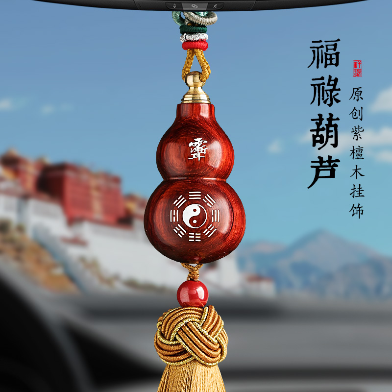 紫檀葫芦汽车挂饰太极八卦平安2025新款 礼物高档车载内后视镜挂件