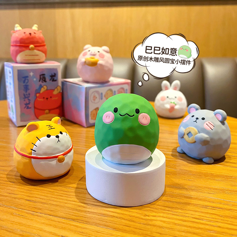 2025年新款 饰品汽车用品 木雕风十二生肖圆宝办公室桌面摆件家居装