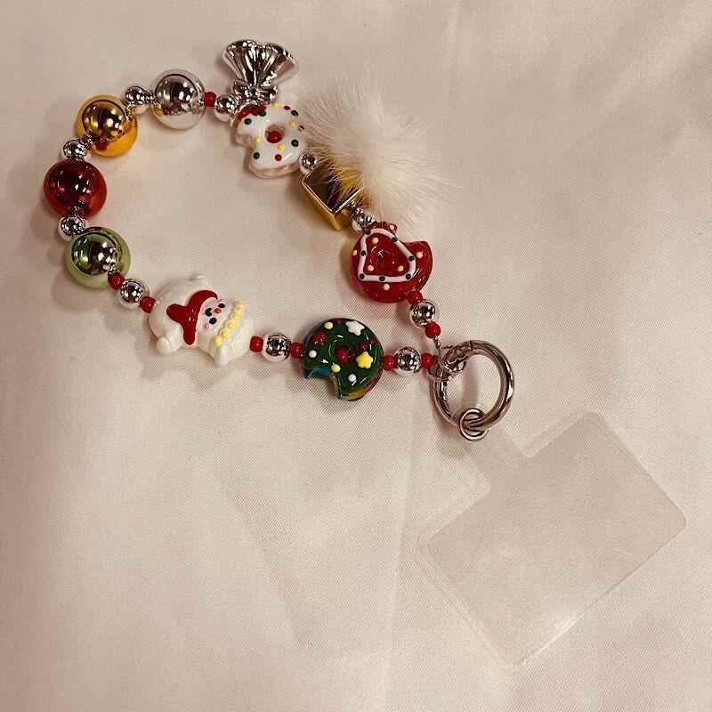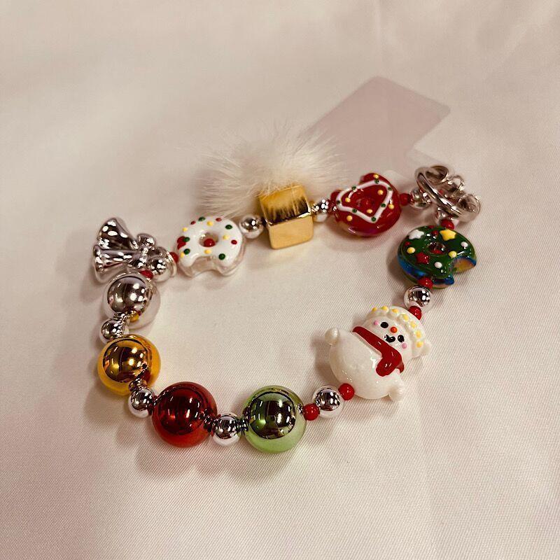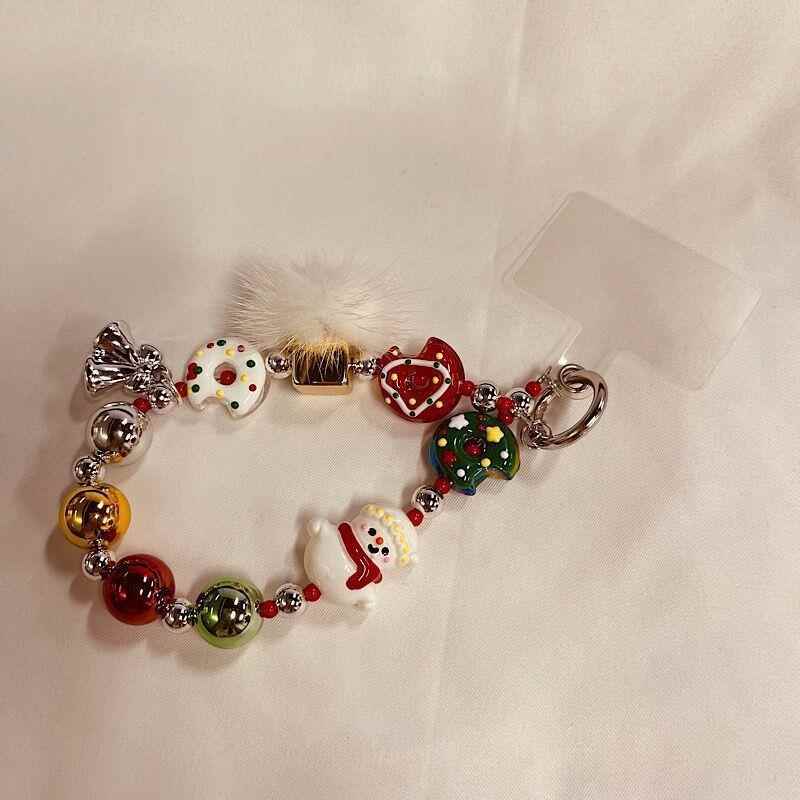 原创圣诞节短款 手机链串珠手工雪人创意情侣挂件礼物挂饰包包挂件