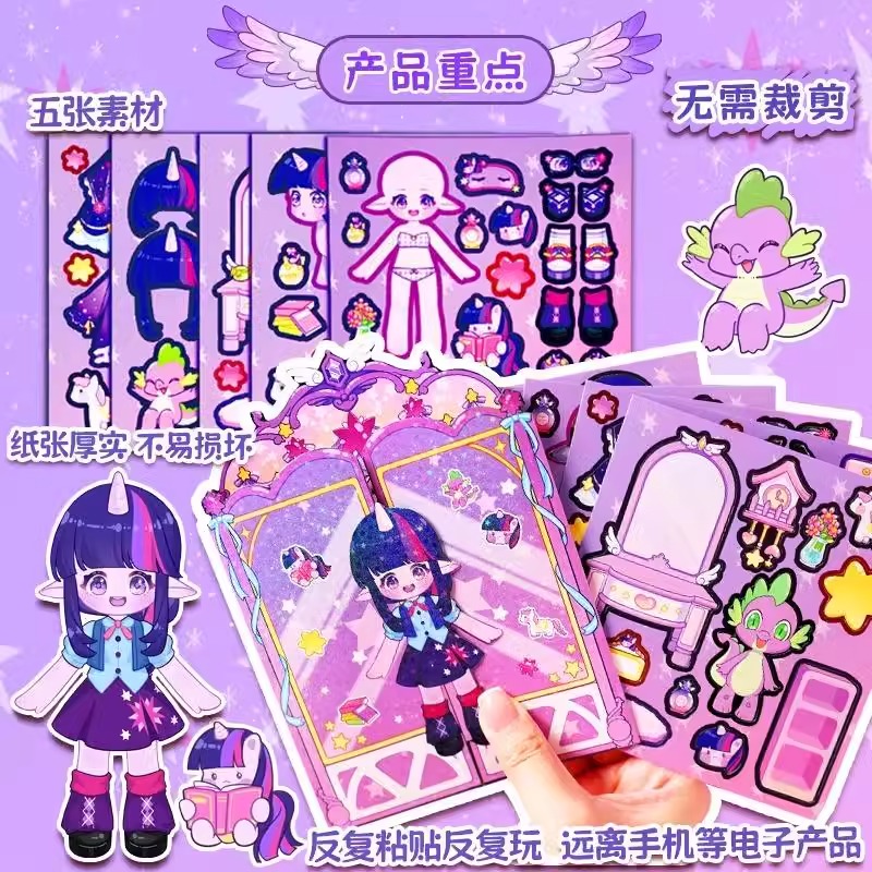 小马宝莉磁力安静书公主换装 女孩儿童手工diy贴画免裁剪 贴纸新款