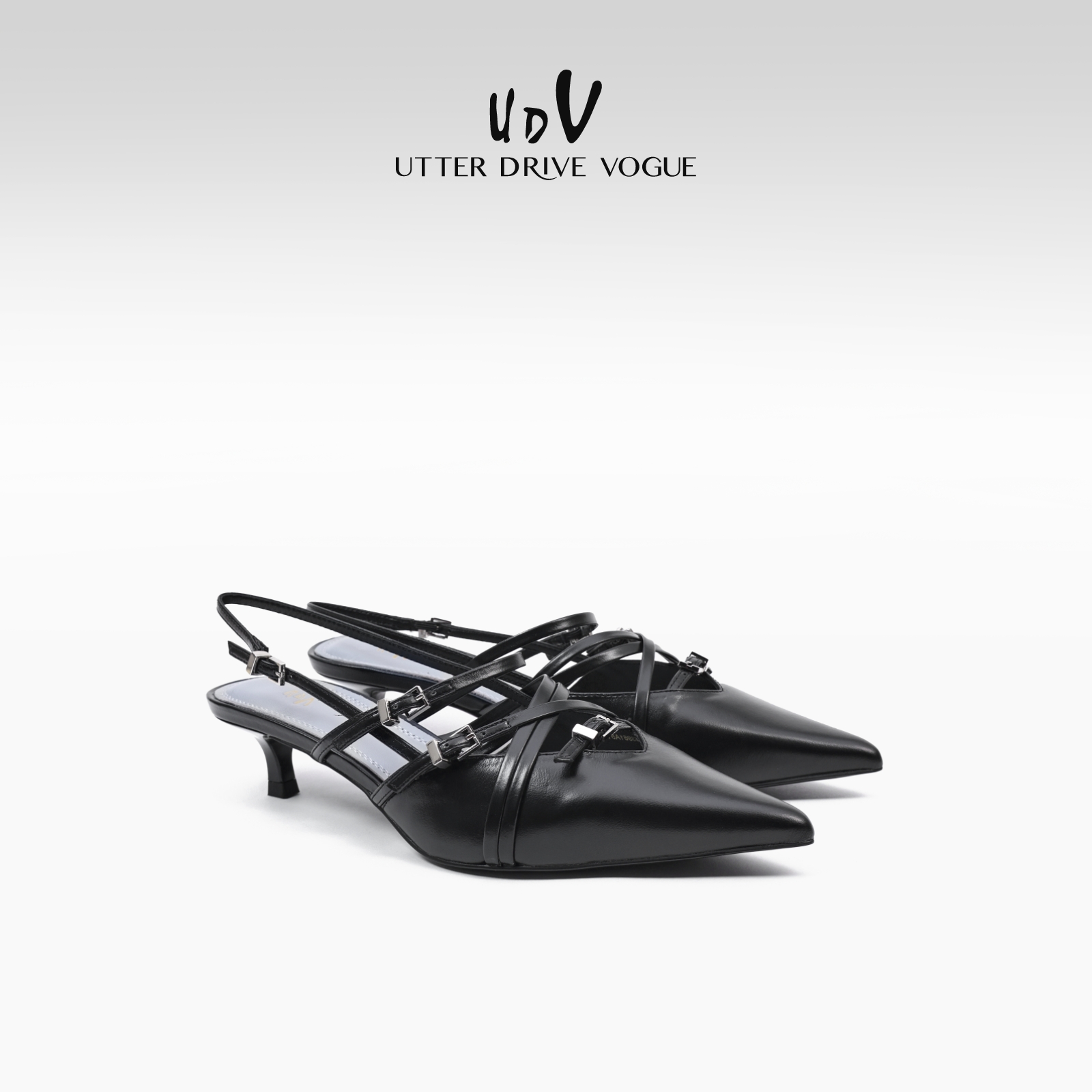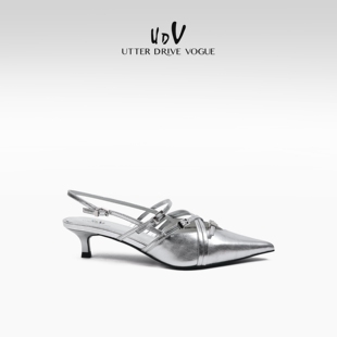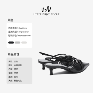 晚宴单鞋 凉鞋 女2025春季 尖头包头后空高跟鞋 设计感 新款 UDV法式