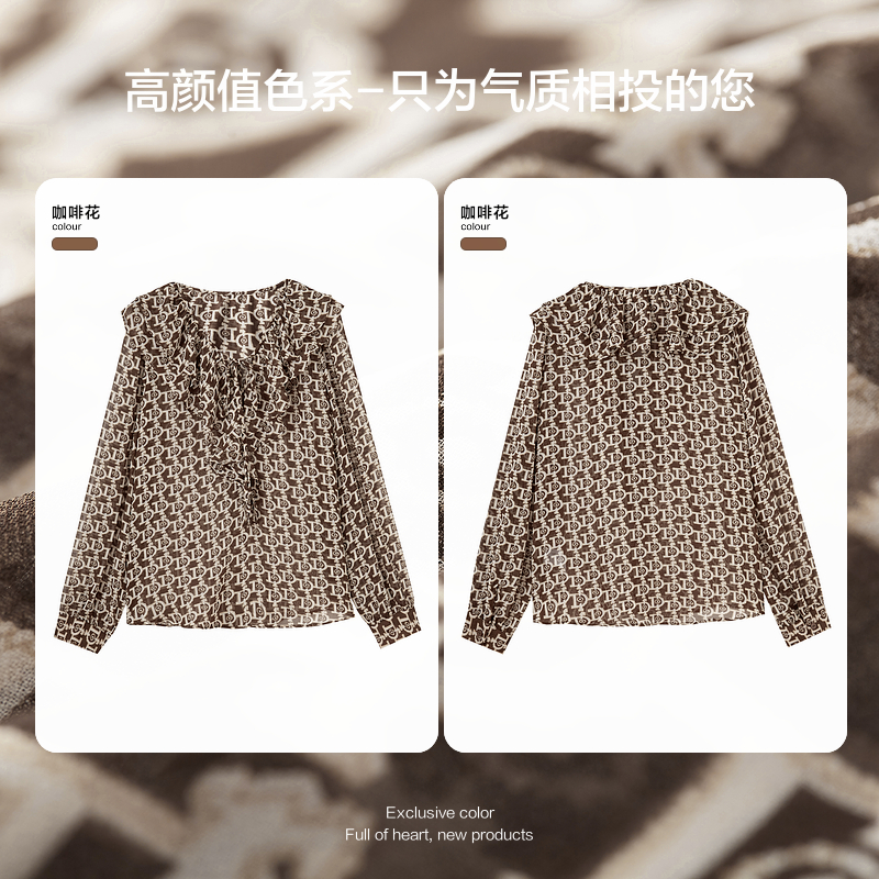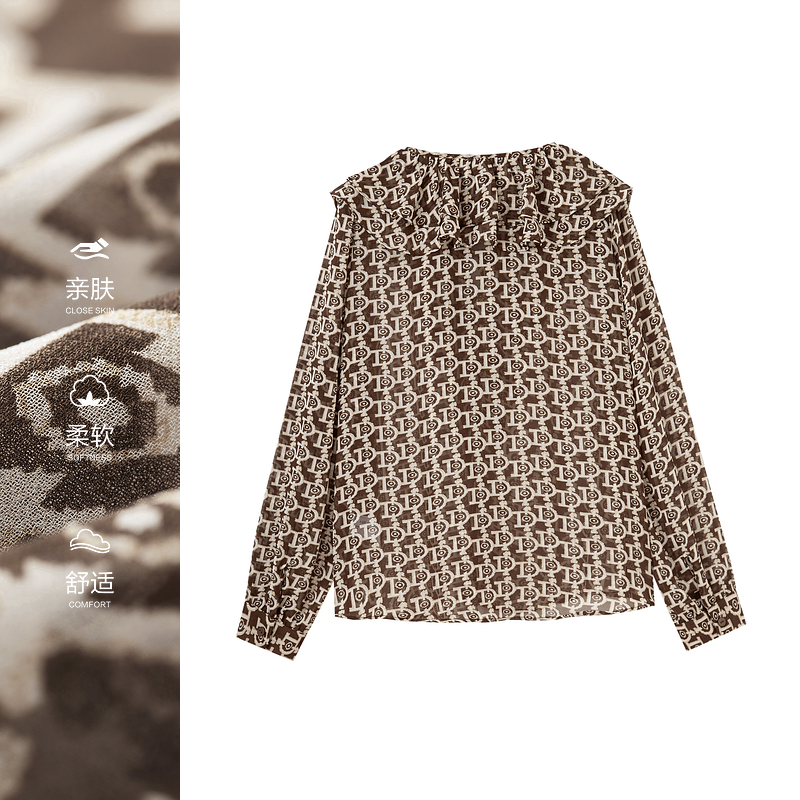 款 四季 肩膀褶皱上衣女 衬衫 花概念双层棉纱新疆100棉文艺休闲长袖