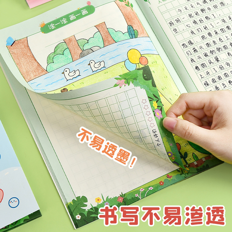 方格绘画日记本小学生专用一年级二三四年级儿童语文看图写话本子卡通可爱左边画画右边写日记作文记事本a5b5
