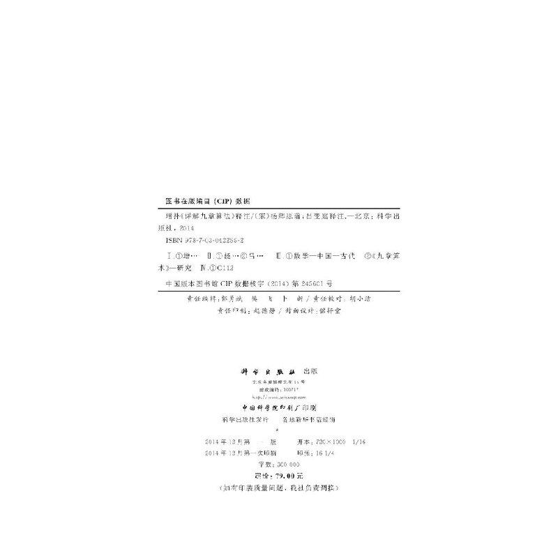 释注 宋 科学出版 增补 社 注 详解九章算法 著;吕变庭 全新正版 杨辉
