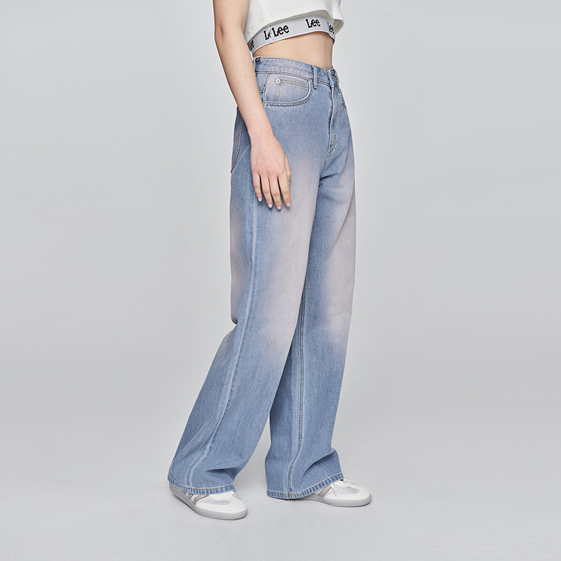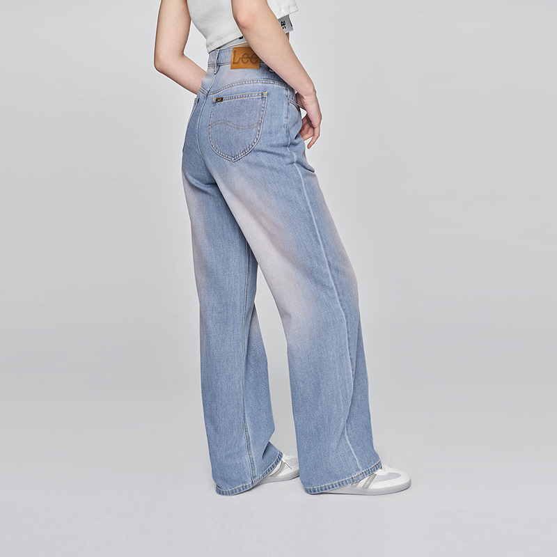 高腰女显瘦宽腿牛仔裤 Lee中蓝色水洗428懒懒裤 潮流 张凌赫代言