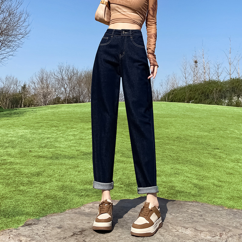 防褪色蓝色牛仔裤 女2025年高腰显瘦春秋冬加绒萝卜九分哈伦老爹裤