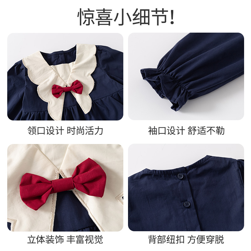 班喜迪女童连衣裙秋装 洋气宝宝公主裙春秋儿童学院风裙子 2025新款