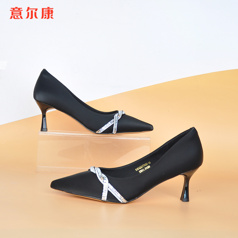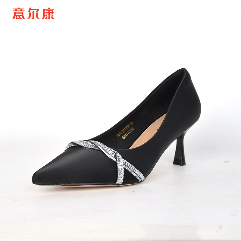 女鞋 职业女单鞋 2025春季 水钻浅口细跟性感高跟鞋 时尚 意尔康正品