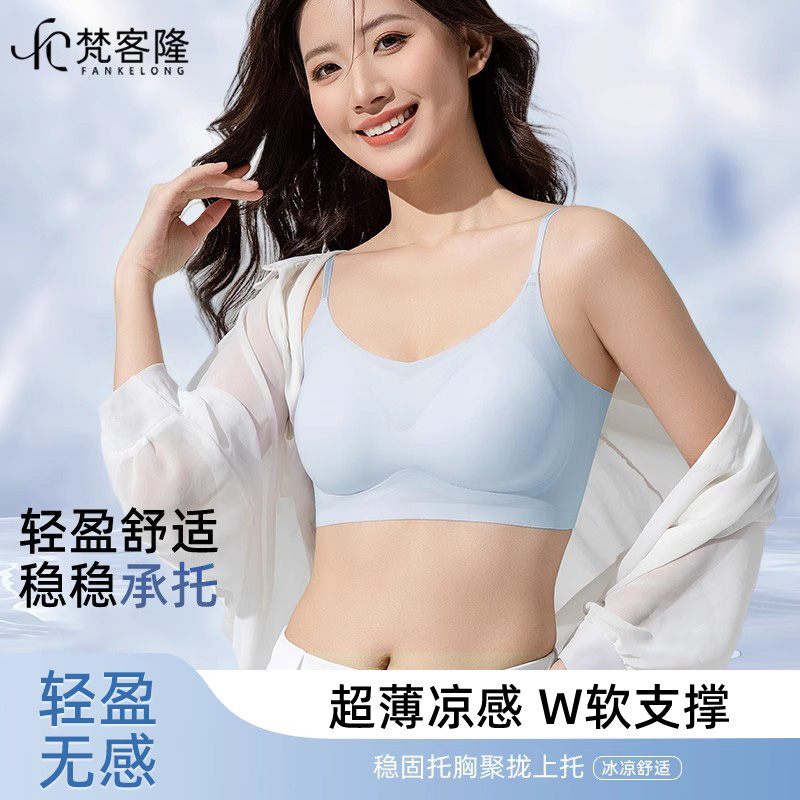 梵客隆无痕内衣细肩带美背心无排扣一体式 小胸聚拢运动隐形文胸罩